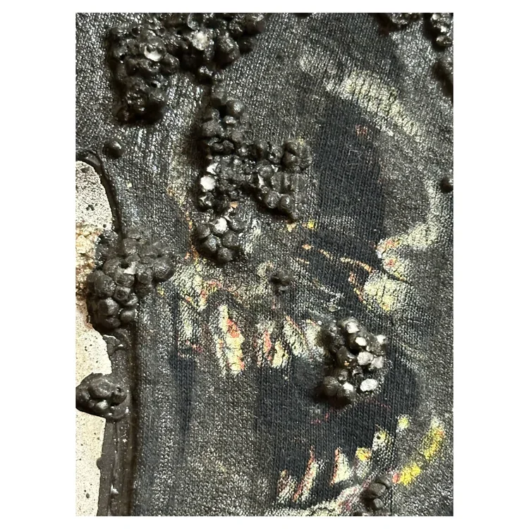 For the past six years, one of us has always rushed home to spend the last few minutes of Valentine’s Day together. This year, it was my turn. Barely making it in time, I arrived home to a fully hung painting show – a collection meticulously crafted by Jon, mapping the memories and changes of our time together. I am proud to curate from this deeply personal collection and present: “If you receive a love letter from me you are fucked forever.”